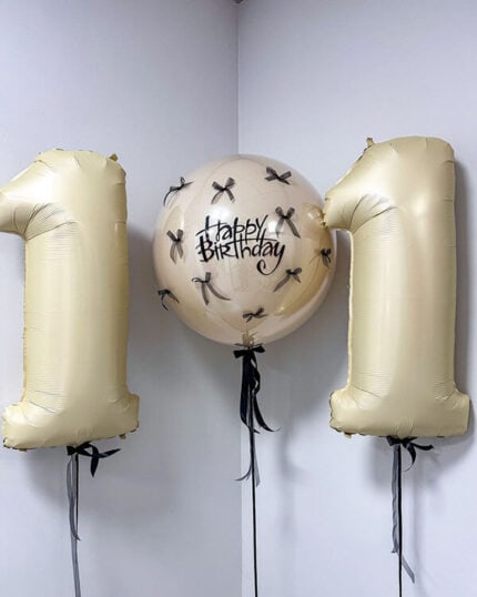 Малый — около 30 см. Применяется для компактных надписей или блесток с тонкими лентами. В данной категории часто используют полностью прозрачный латекс без внешнего слоя.